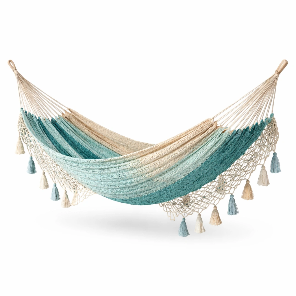 Hamaca de algodón con rayas azules y blancas 200x150 cm