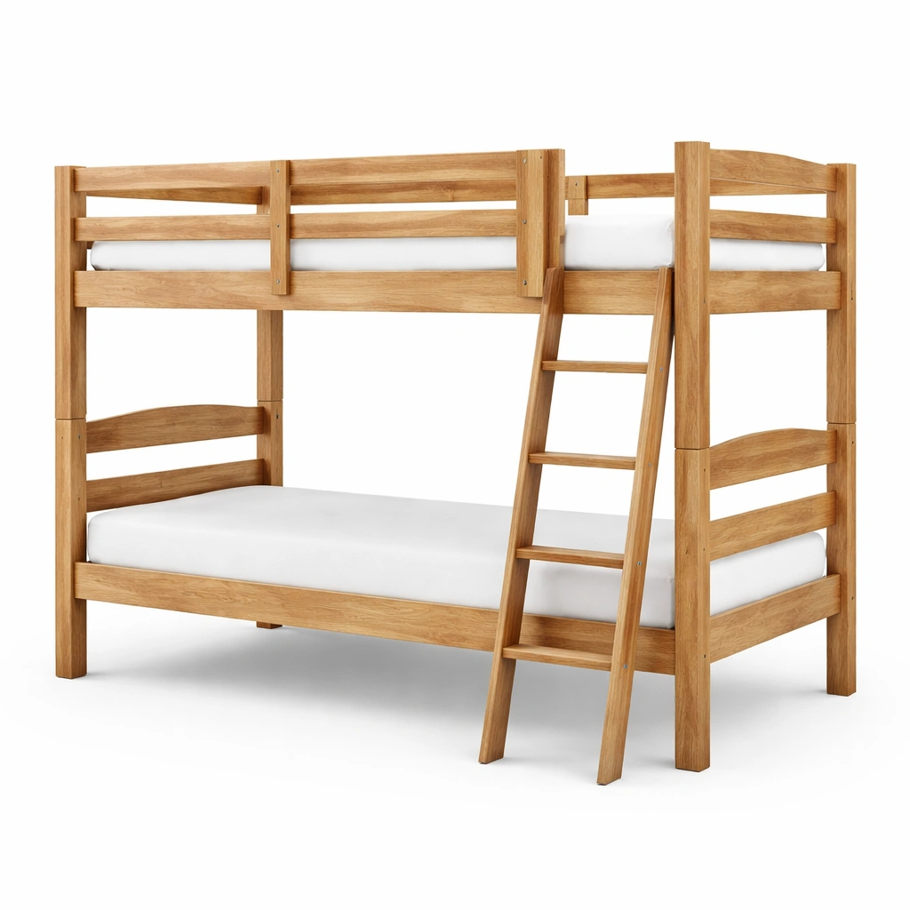 Litera de madera de pino con barandilla de seguridad