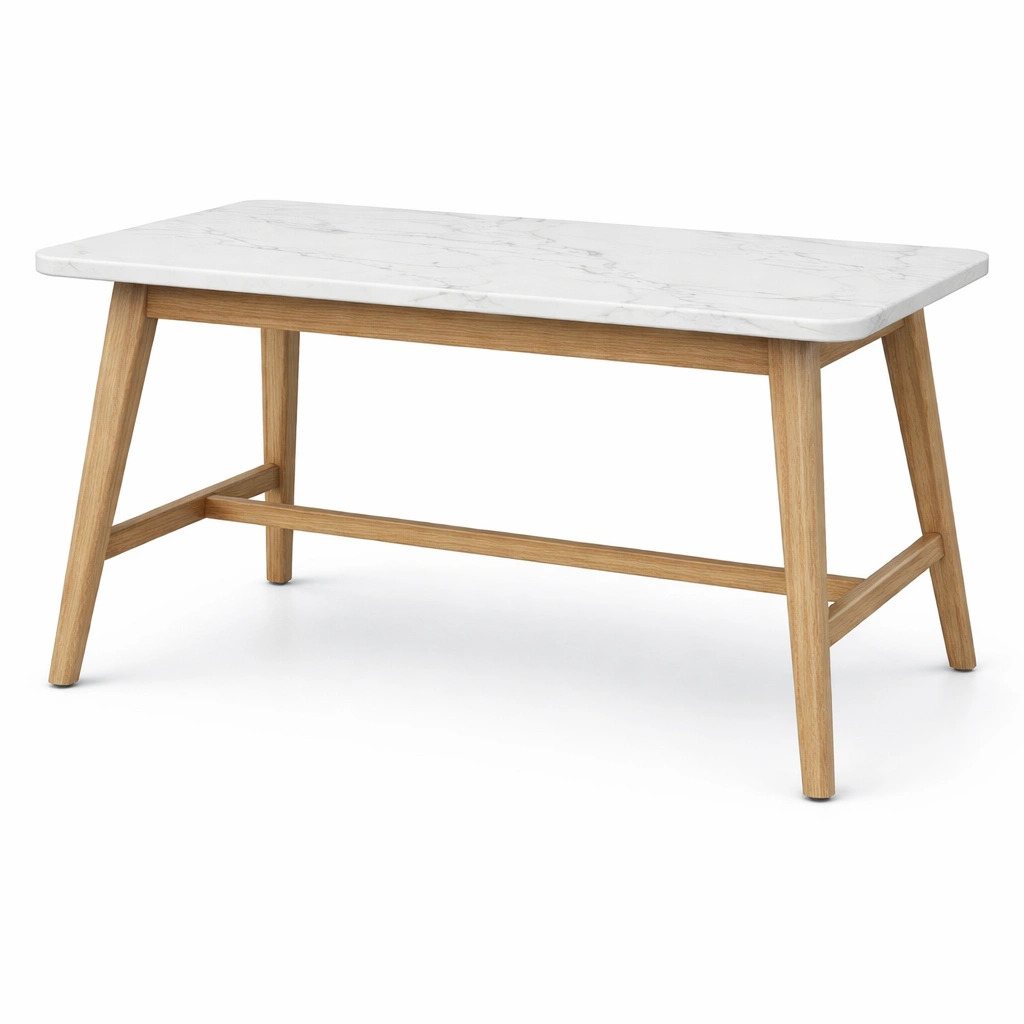 Material: El tablero es de mármol sintético; las patas son de madera de roble.